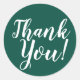 Einfache und moderne Dankeschön-Aufkleber mit Schriftzypografie auf einem trendigen smaragdgrünen Hintergrund.