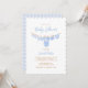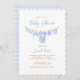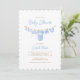 Feiern Sie Ihren kleinen Typ unterwegs mit dieser hübschen Babydusche in einem schlichten minimalistischen Design. Die Einladung zeigt weiche, blaue Babykleidung in Aquarellfarbe, einen himmelblauen Gingham-Hintergrund und einen niedlichen Rahmen - perfekt für eine süße und moderne Babydusche. Wählen Sie aus professionell gedruckten Einladungen oder einem bequemen digitalen Download, um auf Zuhause zu drucken oder online mit Leichtigkeit zu teilen.