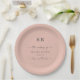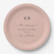 Einfache Solid Color Blush Pink Mit Monogramm Hochzeitsempfehlung Personalisierte Papier Teller. Diese moderne Hochzeit oder jede Veranstaltung Papier Platte Design ist einfach und minimal mit einer schlichten soliden Hintergrund Farbe und trendige Signatur Kalligraphie Skript-Schriftart. Zeigt sich in der rot-rosa Hochzeitsfarbenpalette. Auch ein einfaches Monogramm oben. Die Chic Minimal Wedding Kollektion wird Ihre Hochzeit unvergesslich und schön machen! Um mehr zu sehen, suchen Sie nach Chic Paperie's Hochzeitskollektionen 2022, um alle über Trend Designs und Hochzeitsfarben für dieses Jahr zu sehen.