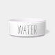 Niedliche moderne Bauernhausschüssel für Hunde oder Katzen mit "Wasser" in handgeschriebenem Stil Holzkohle graue Schrift.