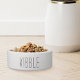 Niedliche moderne Bauernhausschüssel für Hunde oder Katzen mit handgeschriebenen Holzkohlebriefen.