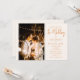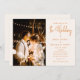 Dieses Foto ist mit braunen Schriftzeichen auf einem hellpastellbeigen Hintergrund gestaltet. Passen Sie mit Ihrem eigenen Foto, Ihren Hochzeitsdetails und Ihren Initialen auf der Rückseite an.