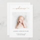 Diese einfach bezaubernde, benutzerdefinierte Foto-Geburtsankündigung Flachkarte verfügt über ein modernes Design, das Sie leicht anpassen können, um Ihren Stil Anzug. Als Standardeinstellung haben wir die scharfen Ecken gewählt, aber man kann das Aussehen leicht in abgerundete Ecken ändern, da dieses Aussehen auch wunderbar mit diesem Design funktioniert. Also versuchen Sie beide Aussehen im Bearbeitungsmodus und sehen Sie, welche Griffe Sie! Dieses minimalistische Design haben wir in einem modernen Schriftart, der gleichzeitig elegant und spielerisch ist, mit einem "Willkommensgruß" über dem Foto versehen. Wir Liebe der stilisierten, länglichen blüh an beiden Enden des Wortes, das seinen skurrilen Flair hinzufügt. Um diesen Aspekt des Designs hervorzuheben, haben wir einen eleganten goldenen Ton gewählt, der manchmal als California Gold für das "Willkommensskript" bezeichnet wird. Aber bitte fühlen Sie sich frei, die Farbe zu ändern oder die Nachricht zu ändern, was Ihrem extravagant erscheint, sei es 'Vorstellen' oder 'Hallo, Welt!', etc. Wenn Sie Ihre Dankbarkeit für ein Geschenk hervorheben möchten und dies zu einer Dankeschön-Karte machen möchten, können Sie es bearbeiten, um "Vielen Dank!" oder "Danke" oder ähnliche Gefühle zu zeigen. Und auf jeden Fall können Sie Ihre Dankbarkeit in eine kurze Botschaft auf der Rückseite einbinden. Sie können die Farbe und den Schriftart dieses oder eines anderen Textes nach Ihrem Geschmack ändern. Die Standardfarbe für den Namen und die Details auf der Vorderseite ist ein etwas abgemildertes Schwarz, und die Standardfarbe des Platzhaltertextes auf der Rückseite ist ein dunkelgrauer Ton, der meist schwarz ist. Wenn Sie ein minimalistischeres Aussehen bevorzugen, können Sie löschen, ohne eine unserer Beispielstatistiken auf der Vorderseite zu ersetzen - Sie wollte möglicherweise nicht, die Zeit des Tages oder die Länge, zum Beispiel, einzubeziehen. Wir haben den Hintergrund auf beiden Seiten als transparent Set, um die Farbe Ihres Papiers lassen, dienen einfach als Grundton. Sie können dies auf einer oder auf beiden Seiten ändern, indem Sie stattdessen eine Farbe auswählen. Auf der Rückseite haben wir Ihnen einen Platzhalter-Text hinzugefügt, der durch Ihre eigene Nachricht ersetzt wird. Sie können sowohl den Schriftart als auch die Textfarbe ändern. Nachdem Sie unseren Platzhalter-Text gelöscht haben, können Sie sich entscheiden, den Rücken ganz leer verlassen, sodass Sie nach Erhalt Ihrer Karten eine handgeschriebene Nachricht mit Ihren Signaturen hinzufügen können. Vergessen Sie in jedem Fall nicht, den gesamten Platzhaltertext sowie unser Beispiel-Foto zu entfernen! Der Standard-Papiertyp, Matte, hat eine weiche Wärme und widersteht dem Schmieren, also ist es eine großartige Wahl, um Ihre eigene Nachricht zu schreiben. Nutzen Sie die intuitiven Designwerkzeuge, Ihr Lieblings-Foto und Ihre Inspiration, um diese individuell gestaltete und individuell gestaltete Geburtstagskarte zu personalisieren.