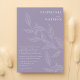Dieses elegante, minimalistische Hochzeitsvorlage zeigt Linien-Kunstblattverzweigungen auf einem staubigen Lavendelhintergrund. Der moderne Kalligraphie-Script-Schriftart verbindet sich wunderbar mit einem klassischen Serif-Schriftart. Eine schöne Einladung für eine Hochzeit im Herbst.