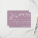 Elegante und minimalistische RSVP-Karte mit einem schönen und zarten, weißen Orchideen-Kontur-Design an der Spitze, auf einem klassischen, staubigen lila Hintergrund. Editieren Sie einfach die Vorlagenfelder, um Ihre Essensauswahl in einem modernen und einfachen Schriftart mit weißer Gesamtfläche hinzuzufügen. Für weitere Personalisierungen oder Sonderanfertigungen, kontaktieren Sie mich bitte unter acherryonthecake@hotmail.com (bitte 1-2 Arbeitstage). Diese RSVP-Karte ist Teil der Kollektion "Delicate Orchids - Dusty Lila Hochzeitssuite" mit vielen koordinierenden Elementen, um eine einzigartige Hochzeitssuite zu schaffen.