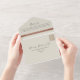 Elegante, moderne, schlichte, zeitgenössische neutrale Erdtöne und Terracotta Hochzeit alles in einer Einladung, mit riesigen Monogramm-Initialen und zwei Bildern des Paares. Fügen Sie Ihre Fotos, Ihre Hochzeitsdetails und uAwg.