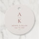 Moderne Cream Brown Monogram Gastgeschenk Hochzeit Tags zeichnen sich durch moderne, weiche, moderne Paarungen in Erdtönen aus.