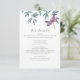 Dieses schlichte, moderne Gartengrün Details der Hochzeitskasse verfügt über eine Aquarelltreppe in lila und rosa Farbtönen. Es befindet sich in einer einfachen Anordnung von natürlichen Aquarellgärten auf weißem Hintergrund. Der Rücken ist ein solides tiefes lila, das mit der Libelle übereinstimmt.
