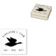 Die Briefmarke des Bauernhauses besticht durch eine hübsche Silhouette einer fliegenden Ente in der Mitte. Der Familienname steht oben, in der modernen Typografie, und unten ist ein eigener Text. Im Template steht:" lokal, frisch, lecker", aber es lässt sich einfach anpassen, indem man auf den Knopf"Diese Vorlage personalisieren" klickt.