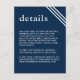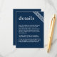 Einfache, moderne Elegant Navy Blue Wedding Detail Begleitkarte