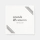 Dieses zeitgenössische Hochzeitsnapkin-Design in Weiß hat tiefe Holzkohle grau (off-schwarz) dreifach ausgekleidete Ecken und Text. Die Namen der Braut und des Bräutigams stehen in der Mitte des Designs sowie am Hochzeitstag im Vordergrund. Personalisieren Sie die Namen und das Hochzeitsdatum der Braut und des Bräutigams, dann stellen Sie sicher, dass Sie Ihre Änderungen zentrieren, indem Sie den gesamten Text auswählen und in die Mitte ziehen. Zentrierende Hilfslinien werden sowohl horizontal als auch vertikal angezeigt, wenn sich der Text in der Mitte der Serviette befindet. Sie können die Farbe dieser Serviette ändern, um Ihre Hochzeitsfarbe Schema, indem Sie "klicken, um weiter anzupassen" am unteren Rand der Textvorlage und wählen Sie eine andere Hintergrundfarbe.