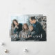 Mit dieser modernen Weihnachtskarte, die zwei Ihrer Lieblings-Fotos und eine elegante Typografie enthält, können Sie Ihren Feiertagssjubiläum ausklingen lassen. Die Vorderseite hat Ihren Nachnamen in einem großformatigen Schriftart mit weißer Handschrift gegenüber Ihrem Lieblings-Vollblut-Foto. Die Rückseite hat das zweite Bild mit einem einfachen weißen Rahmen.