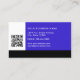 Eine berufliche Visitenkarte mit einem farbigen Pop in einem kobaltblauen, schwarz-weißen Blockmuster macht eine beeindruckende Karte mit grafischem Anklang. Geeignet für jede Art von Unternehmen, gibt es ein Muster dekorative Logo auf der Vorderseite, die Sie mit Ihrem Logo ersetzen können oder verlassen, wie es ist. Personalisieren Sie mit Ihrem Namen und Ihren Daten. Die Rückseite der Karte hat einen QR-Code, um Ihre Website-URL einzuschließen. Wenn Sie es vorziehen, keinen QR-Code auf Ihrer Visitenkarte zu verwenden, können Sie dieses Designelement löschen, indem Sie "Bearbeiten mit der Entwurfsvorlage" auswählen, in dem alle Ebenen des Designs zum Hinzufügen oder Löschen von Zeilen oder Objekten, die Sie entfernen möchten, verfügbar sind.