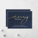 Klassischer und eleganter marineblauer Aquarellhintergrund mit Goldeffekt extravaganter Skripttext "fröhlich" Weihnachten. Begrüßen Sie Ihre Familie und Freunde mit Klasse und Eleganz in dieser Ferienzeit mit dieser stilvollen flachen Grußkarte. Design Copyright © CustomChristmasPhotoCards.com