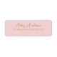 Einfache, moderne, minimalistische und sehr elegante Goldskripttypografie auf rosa Rücksendeadressen-Aufklebern, Chic, maßgefertigt und mit Ihrem Namen und Ihrer Adresse personalisiert.