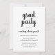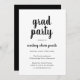 Einfache Graduiertenparty Einladung mit klassischem Design mit "grad Party" und dem Namen des Absolventen in einer dicken schwarzen Schrift-Handschrift über einem weißen Hintergrund. Die Rückseite ist schwarz. Eine elegante Einladung mit einem modernen minimalistischen Flair für einen Absolventen.