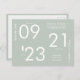 Eine moderne, schlichte, moderne, schlanke, grüne und weiße Postkarte "Save the Date". Machen Sie eine Aussage mit dieser wunderschönen und einzigartigen Postkarte.