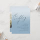 Dieses elegante, moderne Foto Hochzeitsfest lädt zum Set in staubblauen und marineblau-blauen Farben ein. Es verfügt über Ihr Foto auf der Rückseite und ein elegantes Vintages Drehbuch auf der Vorderseite. Es ist einzigartig und zugleich elegant.