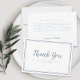 Zeigen Sie Ihren Gast mit unserer Simple Modern Wedding Message Dusty Blue 3 1/"2 X 5" Vielen Dank Flat Card. Die minimalistisch gestaltete Karte weist einen raffinierten, doppelten Rahmen in staubblau auf einem knalligen, weißen Hintergrund auf. Die Vorderseite präsentiert ein stilvolles "Danke" in einem schönen Script-Schriftart, zusammen mit den Namen des Ehepaares und dem Hochzeitstag, alles in staubblauer Farbe. Der Rücken bietet eine Vorlage für eine ganz persönliche, herzlich bedruckte Nachricht an Ihre Familie und Freunde. Diese Karte ist die perfekte Mischung aus Einfachheit und Eleganz und ist ideal für zeitlose und anspruchsvolle Hochzeiten. Bitte lesen Sie den Link unten für weitere Größen und passende Produkte. Bei Fragen oder Farbanfragen wenden Sie sich bitte an den Designer, indem Sie den "MESSAGE"-Button unten oder invitationsuites@gmail.com benutzen.