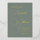 Einfach schön, diese moderne stilvolle Hochzeitseinladung hat ein echtes Goldfolie-Kalligraphie-Skript, das die Namen von Braut und Bräutigam auf tiefgrünem Hintergrund beschreibt. Wow Ihre Hochzeitsgäste mit dieser erstaunlich eleganten Einladung. Personalisieren Sie die Textvorlage mit Ihren Informationen.