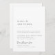 Einfache, moderne Einladungs-Karte für Hochzeiten, in elegantem und dennoch minimalistischem Design, mit dem Namen der Braut und des Bräutigams in stilvoller Serif-Schriftzeichen-Typografie kombiniert mit traditioneller Formulierung für ein elegantes, raffiniertes Gefühl in klassischem Schwarz/Weiß. Eine Hochzeit planen oder nach Ideen suchen? Dieses Design ist perfekt für ein frisch verlobtes Paar, das ein wunderschönes und einzigartiges Einladungs-Set will, um seine Gäste zu schicken, die ihre Hochzeitsdekoration und das Thema ihrer Zeremonie und Empfang. Passen Sie diese Hochzeit einladen, indem Sie Ihre Hochzeitsdetails hinzufügen. Es ist eine schöne Wahl für feierliche Hochzeiten zu jeder Jahreszeit. Alternative Formulierungen und Layouts finden Sie in unserer Simple Minimalistisch Wedding Invitation Collection Kollektion.