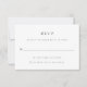 Die RSVP-Karte ist eine perfekte Ergänzung zu dieser modernen, einfachen Hochzeitssuite, die perfekt auf jeden Feiertag abgestimmt ist. Das saubere Schwarz-Weiß-Design und das minimalistische Design ergänzen zeitgenössische und traditionelle Hochzeitsthemen. Die elegante Typografie und das gestraffte Layout der RSVP-Karte verbinden sich mühelos mit einer Vielzahl von Hochzeitsästhetiken - von lässigen Outdoor-Events bis hin zu formellen, klassischen Festen. Ob es sich um eine moderne urbane Ansammlung oder um ein zeitloses, elegantes Ereignis handelt, diese vielseitige Karte sorgt dafür, dass Ihre Hochzeitsdetails mit schlichter Eleganz präsentiert werden.