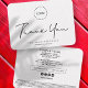 Design setzt sich aus einfacher, kursiver Typografie zusammen. Geben Sie Ihren Firmennamen, Geschäftsnamen oder Shop ein. Fügen Sie den Promo-Code auf der Rückseite, das Ablaufdatum und den Feindruck hinzu. Fügen Sie Ihr Firmenlogo, Social Media Accounts und Firmenwebsite hinzu.