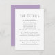 Einfache moderne Lila Hochzeitsdetails Begleitkarte
