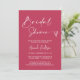Diese schlichte, moderne und elegante Brautduscheinkarte besticht durch Eleganz und Schönheit. Sie besticht durch einen atemberaubenden und wunderschönen handgeschriebenen Schriftart mit Kalligraphie und Herzenslust, gepaart mit einem klassischen Serif-Schriftart für einen zeitlosen Look auf einem viva magenta Hintergrund. Es ist perfekt für Ihr Hochzeitsthema! Passen Sie den Namen und das Party der Braut an und tauschen Sie das Foto durch Ihren QR-Code, die URL der Hochzeitswebsite und andere Informationen zum Geschenkregister aus, um Ihrer Einladungskarte eine angenehme persönliche Touch zu geben. Bitte beachten Sie: Der Wortlaut und das Herz des "Brautparty" können nicht bearbeitet, geändert oder gelöscht werden. Sie können die Einladung nach Ihren Wünschen anpassen und personalisieren. Sie können die Einladung ganz einfach als digitalen Download personalisieren und elektronisch versenden und mit Ihren Gästen über SMS, E-Mail oder Social Media teilen. Oder Sie können auch die Einladung bezüglich Ihrer Daten an Ihre Gäste schicken/schicken. Oder Sie erhalten beides - gedruckte Einladung und erhalten die Einladung in digitaler Form als Sofortdownload.