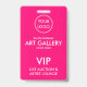 Dieses Musterdesign für eine Kunstgalerie stille Auktion VIP-Abzeichen. Erstellen Sie mit diesem einfachen Design Ihre eigenen modernen Branding-, Marketing- und Werbeprodukte. Alle individuell gestaltbaren Details beinhalten Ihr Firmenlogo, den Standort Ihres Geschäfts, den Firmennamen, das festgestellte Datum und die Veranstaltung oder den benutzerdefinierten Text im Vordergrund. Ihr Firmenlogo, Ihr Firmenname und Ihr Veranstaltungsname im Hintergrund. Das Design ist beruflich, einfach und modern, mit einem magentafarbenen Hintergrund und eleganter serifenloser weißer Typografie. Dieses Design ist vielseitig, da sich die Anpassung an jede Art von Unternehmen, Beruf oder Industrie anpasst.