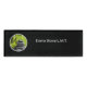 Lizenzierte Massage Therapist minimalistische Namensschilder Template Design mit Bild von heißen Steinen und Blätter im Hintergrund und Namen Platz können Sie online anpassen.