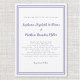 Das elegante und trendige Wedding Invitation besticht durch ein schlichtes, minimalistisches Design mit einem doppelten Rahmen in zwinkelblau auf einem knalligen weißen Hintergrund. Traditionelle Formulierungen bieten zeitlose, aber moderne Eleganz. Persönliche Gestaltung der Hochzeitsfeier mit Ihren Details in schicken periwinkle blauen Buchstaben und Schrift. Die Rückseite der Karte passt in Blau.