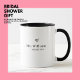 Dieser personalisierte Schlamm für eine Braut ist das perfekte Geschenk, um ihre bevorstehende Hochzeit zu feiern. Die Tasse zeichnet sich durch ein schlichtes und modernes Herzdesign der Liebe aus, zusammen mit der Braut, um den zukünftigen Namen und das Hochzeitstag zu sein. Mit seinem hochwertigen Material für die Keramik ist diese Tasse sowohl haltbar als auch elegant, was sie zu einer großen Ergänzung der Brautkollektion für Trauungsdenkmäler macht. Beginnen Sie Ihren Tag mit einer warmen Tasse Kaffee oder Tee in diesem schönen und personalisierten Schlamm.