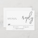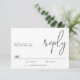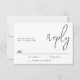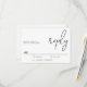 Dieses einfache Hochzeitsdesign im RSVP-Design mit minimalistischem Anklang und modernem Styling bietet das Wort "Antwort" in edgy, zeitgenössisch handgeschriebenem Gesicht. Personalisieren Sie diese Karte mit Ihrem gewünschten Antwortdatum. Andere passende Artikel sind in diesem einzigartigen Design-Stil erhältlich.