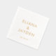 Fügen Sie eine elegante personalisierte Touch zu den Dekorationen der Hochzeitsfeier mit individuell geprägten Papierservietten hinzu. Alle Texte auf dieser Vorlage sind einfach zu personalisieren für eine Hochzeit, Engagement Party, Ehepaar Brautparty, Jubiläum oder andere Anlässe. Die Namen des Paares können als mit Monogramm Initialen oder als Text Ihrer Wahl angepasst werden. Die reale metallische Folie in weiß und gold weist elegante, minimalistische Typografiebezeichnungen und Datums auf. Diese stilvollen Cocktail-Servietten ergänzen eine einzigartige, individuelle Touch zu einem besonderen Tag. Herzlichen Glückwunsch an die Braut und Bräutigam!