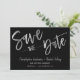 Diese Einladung enthält einen Silber-Folie-Effekt von Imitaten mit einem schwarzen Chalkboard-Hintergrund. "Save the Date" erscheint in einem Imitat Silberfolie-Effekt, druckt aber keine Silberfolie. Hinweis: "Save the Date" und seine Grafiken können nicht geändert, bearbeitet oder gelöscht werden. Sie können diese Einladung anpassen, indem Sie auf der Kartenrückseite ein Foto hinzufügen, wenn Sie möchten. Sie können die Paarnamen und Text, einschließlich Datum und Ort, personalisieren/anpassen. Sie können sogar die Hintergrundfarbe von der Tafel in eine beliebige Farbe ändern.