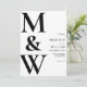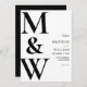 Einfache moderne Monogram Schwarz-Weiß Hochzeitseinladung. Enthält fett formatierte Monogramm-Typografie und minimales grafisches Design. Personalisieren Sie Text mit allen Details Ihres besonderen Tages.