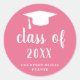 Minimalistischer Aufkleber für Abschluss mit einem schlichten und klassischen Design mit einem Graduiertendeckel und "Jahrgangsklasse" in einer dicken Schrift, zusammen mit dem Namen des Absolventen in Weiß auf einem rosa Hintergrund. Die Hintergrundfarbe kann in eine beliebige Farbe geändert werden. Traditioneller Stil mit modernem Flair, der perfekt für einen Abitur geeignet ist. Diese Aufkleber sind großartig als Umschlag Aufkleber oder für Gastgeschenke.