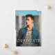 Moderne Junge Abschluss-Ankündigungskarte mit einem einfachen und männlichen Design mit "Graduate" in großen mutigen Typografie zusammen mit dem Namen, dem Jahr und dem Schulnamen des Absolventen über Ihrem Lieblings-Vollblut-Vertikal-Foto. Die Rückseite hat ein quadratisches Bild mit Ihrer persönlichen Nachricht unten in einem navy blauen Serif-Schriftart über einem weißen Hintergrund.