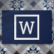 Einfache moderne Navy Blue Graphic Border Monogram Fußmatte