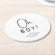 Einfache moderne neutrale Babydusche Oh Junge! Runder Pappuntersetzer
