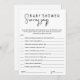 ANTWORTEN:<Q1>Erstes Lächeln (30) Halten des Babys (25) Erste Schritte (20) Erstes Wort des Babys (15) Kinderlachen (10)<Q2>Hunger (5) Braucht eine Windung (4) Müde (3) Will Aufmerksamkeit (2)<Q3>Waschen des Babys (50) Windelwechsel (25) Fütternd (15) Besorgnis erregend (10)<Q4>Schlaf (40) Schrei (30) essen (20) Kack (10)<Q5>Getreide (40) Reißbananen (25) Reißkartoffeln (20) Applesauce (10) Erbsen (5) (35) Steckdosen (25) Treppen (20) Sharp Corners (10) Doors (10) (45) Wippchen (30) Flaschen (15) Extra Bekleidung (5) Schnuller (5)<Q6>Erste Schritte (35) Erstes Wort (30) Erster Zahn (20) Crawling (10) Aufsetzen (5)<Q7>Baby Yoda (40) Maggie Simpson (30) Jack-Jack (The Incredibles) (20) Stewie Griffin (10)<Q8>"Twinkle, Twinkle, Little Star" (5) "Rock-a-Bye Baby" (4) "Hush, Little Baby" (3) "Brahms' Lullaby" (2) Bewundern Sie Ihre Kleine mit unserer einfachen, modernen, neutralen Babydusche-Umfrage, die mit einem minimalistischen Schwarzweiß-Design in modernem und hübschem Design aufwartet. Das moderne, geschlechtsneutrale Ambiente mit seiner sauberen, boho-inspiriert Ästhetik eignet sich perfekt, um einen kleinen Jungen oder ein Mädchen zu jeder Jahreszeit willkommen zu heißen - sei es im Herbst, im Winter, im Frühling oder darüber hinaus. Dieses unisex Design ist mühelos niedlich und macht Spaß und Set für ein stilvolles und minimales Fest! Gerne stehen wir Ihnen für Fragen zur Produktgestaltung zur Verfügung.