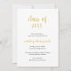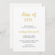 Minimalistische Abschluss-Ankündigungskarte mit einem einfachen und klassischen Design mit "Jahrgangsklasse" und dem Namen des Absolventen in einer dicken goldfarbenen Schrift-Handschrift auf weißem Hintergrund. Eine traditionelle Ankündigungskarte mit einem modernen Flair für einen Absolventen.