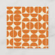 Diese kreative und berufliche, quadratische Visitenkarten-Vorlage mit Ihrem Logo und Ihren Kontaktinformationen ist mit einem modernen inspirierten Muster aus der Mitte des Jahrhunderts auf der Rückseite in verbrannter Orange versehen.