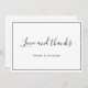 Bearbeiten Sie die Vorder- und Rückseite der Karte, um unsere Beispieldetails in Ihre eigene umzuwandeln, und löschen Sie, ohne Text zu ersetzen, wenn Sie ein einfacheres Aussehen bevorzugen. Die 'Liebe und Dank'-Nachricht auf der Vorderseite in einem Handschriftenschreiben verwendet eine Hauptstadt 'L' nur für das erste Wort, aber Sie können dies ändern und alle Buchstaben kleiner schreiben, oder die Hauptstadt 'L' in 'Liebe' behalten und das 't' auch in 'Dank'-Hauptstadt machen, wenn Sie es vorziehen. Oder Sie wollte, diesen Teil des Designs zu ändern und dort eine andere Nachricht zu zeigen. Sie können die Textfarbe, den Schriftart und die Textgröße ändern und auch die Hintergrundfarbe auf beiden Seiten ändern, um Ihren Geschmack zu Anzug zu bringen. Wir haben Set auf beiden Seiten als transparent, um die Farbe des Papiers lassen dienen einfach als Grundton. Der Text auf der Vorderseite und der Rand sind standardmäßig schwarz, und der Text auf der Rückseite der Karte ist sehr dunkelgrau, meist schwarz. Sie können es vorziehen, den Text auf der Rückseite zu löschen, ohne ihn durch Ihre eigenen Daten zu ersetzen, indem Sie den hinteren Text leer verlassen haben. Dann können Sie auf jeder Karte eine handgeschriebene Note schreiben, nachdem Sie Ihre Karten erhalten haben.
