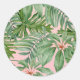 Einfache, moderne, rosa Palmblätterblätter tropisc Runder Aufkleber