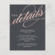 Einfache Graue und Rose Gold-Script-Einfügekarten lesen "Die Details" und personalisierbaren Text ist unten. Ideal, um mit Ihrer Hochzeitseinladung Anfahrtsbeschreibungen und Unterkunftsinformationen zu erhalten.