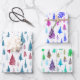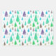 Dieses moderne, künstlerische Set besteht aus drei Blättern mit lebhaften Farbvariationen: rot und grün, magenta, lila und blau, hell grün und türkis. Das Design besticht durch eine wunderschöne Winterlandschaft in Aquarelltönen, die eine einfache Naturlandschaft mit farbenfrohen Weihnachtskiefern auf einem ruhigen weißen Winterhintergrund zeigt. Ideal zum Verpacken von Geschenken für Weihnachtsfeiertage oder andere Winterveranstaltungen, fügt dieses Packpapier Ihren Geschenken eine festliche und künstlerische Touch hinzu.