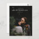 Diese minimalistische moderne Foto Hochzeit speichern das Datum Postcard Vorlage hat einen einfachen, sauberen Look mit Ihren Namen am unteren Rand in einem Skript-Schriftart. Sie können einen anderen Schriftart-Stil, ein Skript oder eine andere, für Ihre Namen oder einen anderen Teil des Textes bevorzugen. Sie können auch Größe und Farbe des Textes ändern. Beachten Sie jedoch, dass, wenn Sie diese Karte bearbeiten, um Ihre eigenen Informationen zu enthalten, einige Textfelder wie Datum und Hochzeitsort für Vorder- und Rückseite gleich sind. Wenn Sie dies auf der einen Seite ändern, ändert sich das automatisch auch auf der anderen Seite. Dadurch wird die Möglichkeit eingeschränkt, einen bestimmten Text zu löschen oder den Schriftart zu ändern usw., da die Änderung für das Textfeld auf beiden Seiten der Karte wirksam wird, was Sie möglicherweise nicht beabsichtigen. Ihre Namen können jedoch separat auf jeder Seite bearbeitet werden, da jede Seite für die Namen im Bearbeitungsmodus über ein eigenes Textfeld verfügt. Beachten Sie auch, und ändern Sie das Beispiel Rücksendeadresse Info zu Ihrer eigenen Info, da es ziemlich klein ist und unten auf der Rückseite der Karte ist, leicht übersehen! Sie können die Zeilen für die Informationen des Empfängers und/oder den "Zustelltext" dort entfernen, wenn Sie ein einfacheres Aussehen gewollt haben.