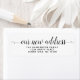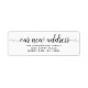 Moderne, einfache Skript-Rücksendeadressen-Aufkleber für die Familie, die gerade umgezogen ist! Atemberaubend mit herrlichen Wirbel, sind diese neuen, schwarz-weiß-Adressetiketten das perfekte Schreibwarenprodukt für schöne Urlaubsmailings nach einem Umzug.